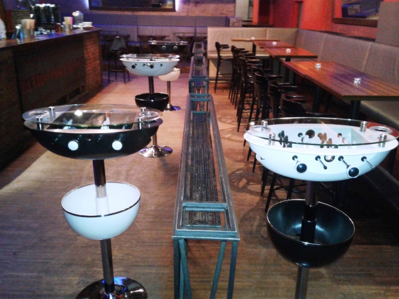 Každý stůl je plně funkční, vybaven herním mechanismem, míčky a madly.