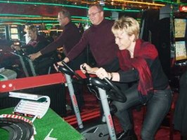 Pohyb i zábava v jednom – hráči musí šlapat, aby rozhýbali autíčka – ideální spojení sportu a soutěže.