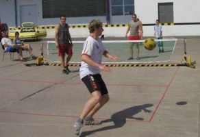 Teambuildingové odpoledne – týmy se střídají u sítě a budují týmového ducha